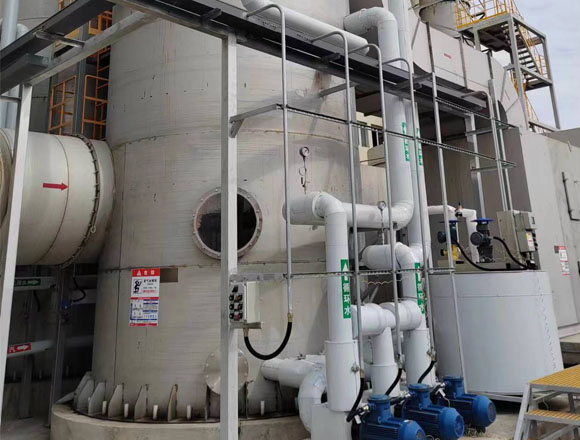 焚燒爐-脫硝系統(tǒng)-導(dǎo)油換熱器-煙氣預(yù)熱器-高溫布袋除塵器-除塵除霧塔--風(fēng)機(jī)-控制系統(tǒng)